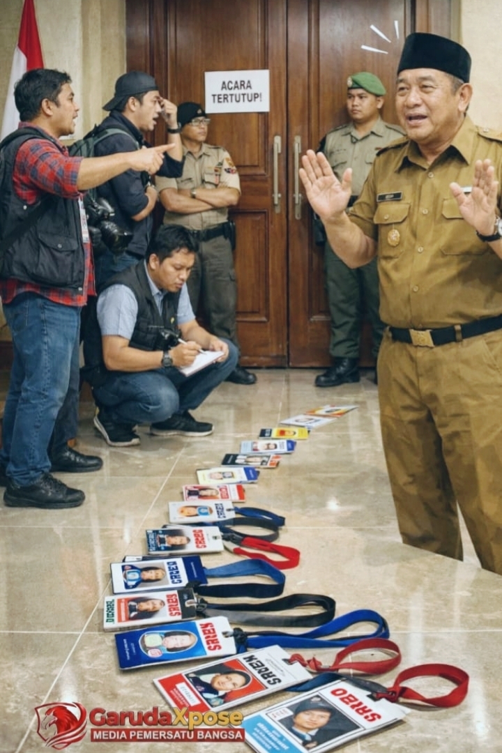 PEKALONGAN,GarudaXpose.com//- Suasana acara resmi Pemerintah Kabupaten Pekalongan yang seharusnya berlangsung khidmat justru berubah menjadi penuh drama pada Senin (9/3/2026). Puluhan awak media yang datang dengan niat meliput penyerahan Surat Keputusan (SK) Pelaksana Tugas (PLT) Bupati Pekalongan malah “mentok” di depan pintu ruang acara.