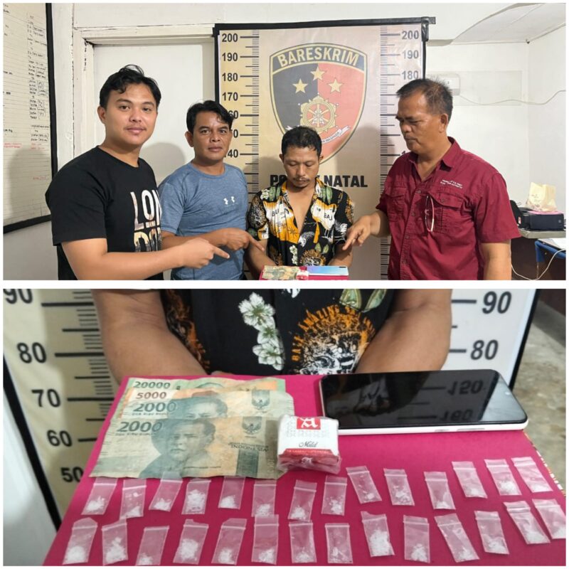 Penangkapan bermula dari laporan masyarakat mengenai adanya aktivitas transaksi narkoba di kawasan perkebunan kelapa sawit. Menindaklanjuti informasi tersebut, Kapolsek Natal AKP Maraden Pakpahan, SH bersama personel langsung melakukan penyelidikan dan pengintaian pada Sabtu (22/11/2025) sekitar pukul 10.00 WIB.