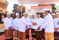 Ket. Foto: Wakil Wali Kota Denpasar, I Kadek Agus Arya Wibawa dalam kesempatan menghadiri pelaksanaan pengukuhan dan prosesi upacara Majaya-jaya Bendesa Adat Pedungan Masa…
