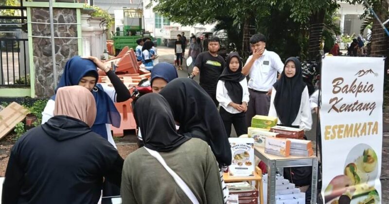 Di lapak sederhana tersebut, sejumlah siswa dari SMK Negeri Sukapura tampak sibuk menjajakan aneka jajanan berbahan dasar kentang. Dimana umbi-umbian itu hasil dari lahan pertanian daerah setempat.