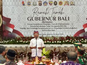 Garudaxpose.com l Denpasar-Bali – Gubernur Bali Wayan Koster menggelar ramah tamah dalam rangka menyambut hadirnya Hari Raya Nyepi Tahun Çaka 1948 yang hampir bersamaan dengan Hari Raya Idup Fitri 1447 Hijriah, guna mempererat hubungan Silaturahmi serta meningkatkan sinergi antara Pemprov Bali dengan Unsur Forkopimda, FKUB, Majelis dan Lembaga Keagamaan serta Organisasi Masyarakat bertempat di Gedung Kertha Sabha, Jayasabha, Denpasar, Senin (16/3).