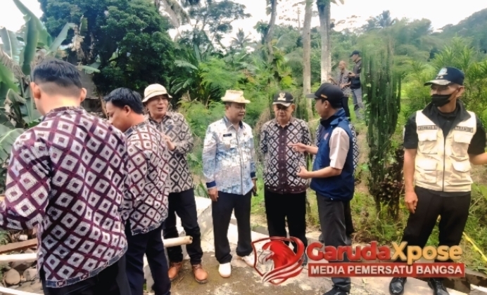 Photo/dok, Wakil Bupati Wurja,SE Meninjau Jembatan putus di terjang banjir di desa kali Longkrang, Desa Langkap dan Adisana,Kamis, 5 Maret 2026