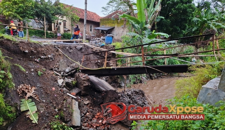 BREBES,GarudaXpose.com-//Bumiayu Sebuah dentuman keras, suara gemuruh air yang mematikan, dan kemudian keheningan yang menyesakkan. Itulah sketsa kelam Rabu sore, 4 Maret 2026, ketika Jembatan Kali Longkrang, sang “urat nadi” yang telah lama menghubungkan dua Desa Langkap dan Desa Adisana di Kecamatan Bumiayu menyerah pada amukan banjir bandang. Tidak hanya struktur baja dan beton sepanjang 10 meter dengan lebar 3 meter yang luluh lantak, namun juga memutus akses, memecah rutinitas, dan sempat meruntuhkan harapan ribuan penduduk yang kini terisolasi dari salah satu infrastruktur paling vital mereka.