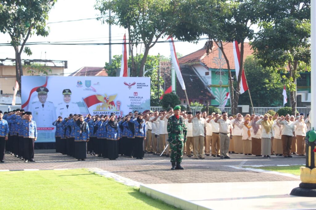 Kasdim 0820/Probolinggo Mayor Inf Herawadi kurnawan menghadiri secara langsung pelaksanaan upacara memperingati hari kesaktian Pancasila tahun 2025 di lingkungan Pemerintah Kota Problinggo, Rabu (1/10).