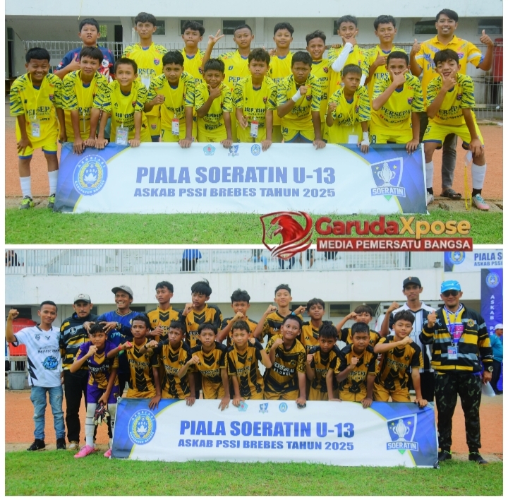 BREBES,GarudaXpose.com-Bos Rakwan- Tiem Persepa FC Pamulihan akhirnya mengukir sejarah dengan mengangkat trofi Piala Soeratin U-13 Askab PSSI Brebes 2025 setelah menaklukkan Persiklu Kluwut FC melalui drama adu penalti yang menegangkan di Stadion Karangbirahi Brebes, Minggu 23 November 2025 sore.