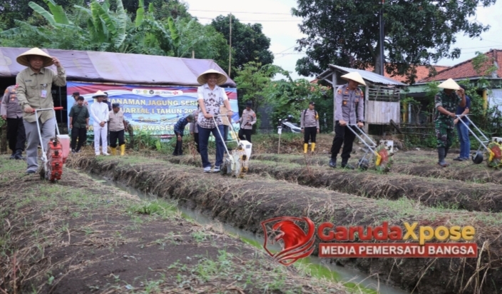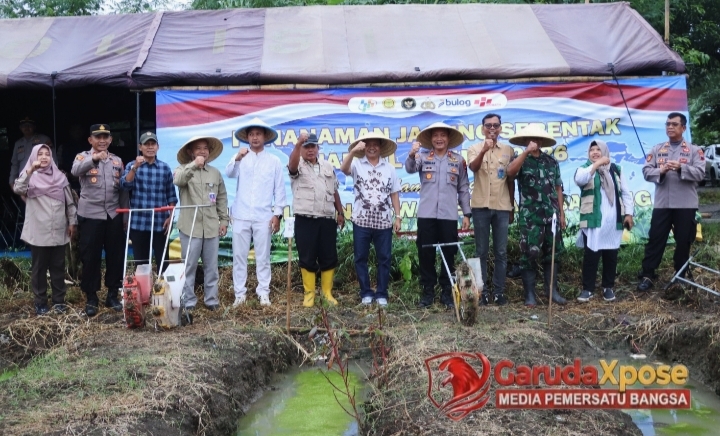 BREBES,GarudaXpose.com-Jawa Tengah //-Di tengah gejolak global dan urgensi akan ketersediaan pangan yang mandiri, Pemerintah Kabupaten Brebes bersama Kepolisian Resor Brebes melancarkan sebuah gebrakan signifikan, menegaskan komitmen mereka yang tak goyah dalam mengawal kedaulatan pangan nasional. Sebuah demonstrasi penanaman bibit jagung serentak yang tak hanya masif namun juga terorganisir rapi berhasil dipentaskan di hamparan persawahan Desa Wangandalem, Kecamatan Brebes, pada hari Sabtu (7/3/2026) sore. Aksi ini bukan sekadar rutinitas agraris, melainkan sebuah deklarasi langkah konkret yang secara presisi menyelaraskan diri dengan ruh Asta Cita Presiden, mengarahkan roda pembangunan agraria menuju swasembada pangan yang kokoh dan berkelanjutan.