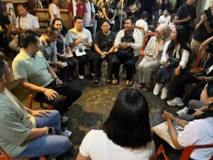 Berlokasi di salah satu ruang UMKM Jembrana, Sabtu malam (7/2) diskusi berlangsung cair. Tanpa podium dan meja formal, Bupati dan Wabup duduk sejajar bersama generasi muda, mendengar langsung aspirasi, ide, hingga kritik yang disampaikan secara terbuka.