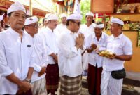 Ket. Foto: Walikota Denpasar, I Gusti Ngurah Jaya Negara menghadiri Karya Melaspas dan Pedudusan Alit Pura Batur Panti Kawitan Arya Wang Bang Pinatih, Desa…