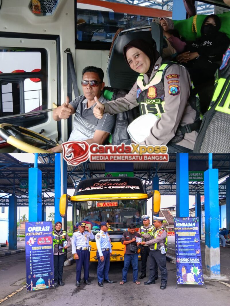 GarudaXpose.com I Lumajang – Dalam rangka mendukung kelancaran dan keselamatan arus mudik, Satlantas Polres Lumajang melalui Unit Kamsel memberikan himbauan kepada para sopir bus dan penumpang di Terminal Menak Koncar, Desa Wonorejo, Kecamatan Kedungjajang, Kabupaten Lumajang, Selasa (17/3/2026).