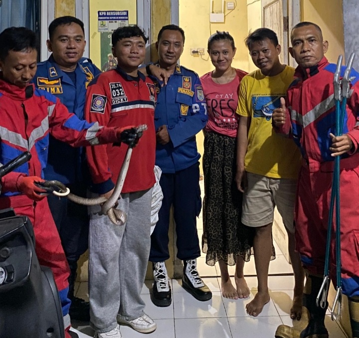 Garudaxpose.com | Probolinggo – Seekor ular cobra berhasil dievakuasi oleh tim rescue Damkar Kota Probolinggo dari rumah warga di Jl. Lumajang, Perum Rangga Permai, Jrebeng Lor, Kecamatan Kedopok, Kota Probolinggo, Rabu (8/4/2026) malam.