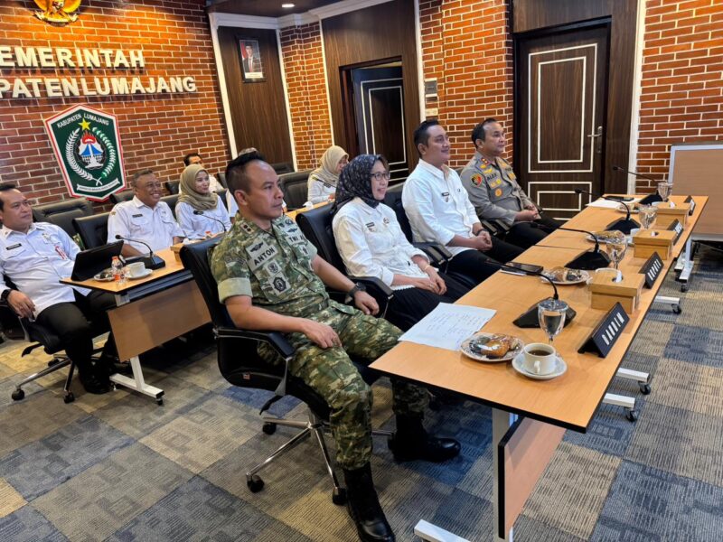 Kegiatan nasional tersebut diikuti secara virtual oleh Dandim 0821/Lumajang Letkol Arh Anton Subhandi, S.I.P., M.I.P., bersama jajaran Forum Koordinasi Pimpinan Daerah (Forkopimda) Kabupaten Lumajang, melalui zoom meeting yang berlangsung di Ruang Mahameru, Laboratorium Kabupaten Lumajang.