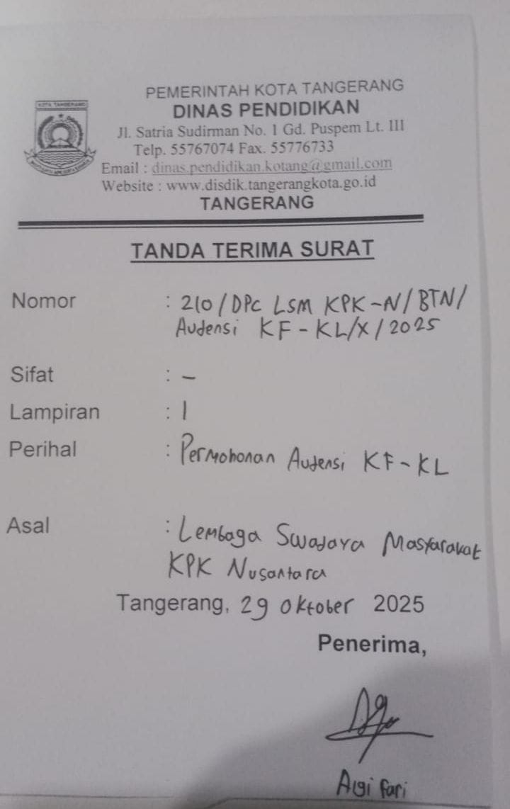 Dindik Kota Tangerang Diduga Abaikan Dugaan Korupsi Rp43 Miliar, LSM KPK Nusantara Geram Surat Tak Dijawab