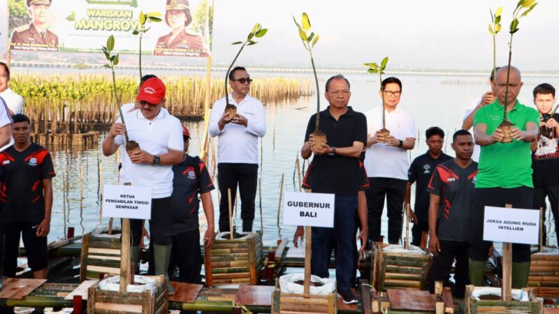 Kegiatan sinergi lintas sektor dalam menjaga ekosistem pesisir Bali kembali ditegaskan melalui aksi nyata. Wali Kota Denpasar, I Gusti Ngurah Jaya Negara bersama Kepala Kejaksaan Tinggi (Kajati) Bali, Dr. Chatarina Muliana, Gubernur Bali, Wayan Koster dan Bupati Badung I Wayan Adi Arnawa mengikuti aksi penanaman mangrove dan pelepasan burung di kawasan Taman Hutan Raya Ngurah Rai, Sabtu (25/4).