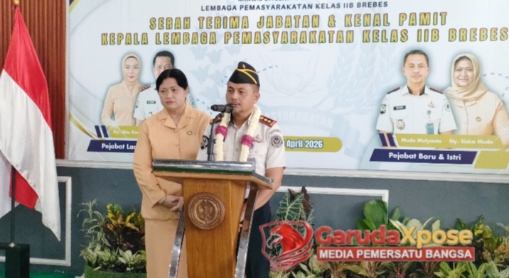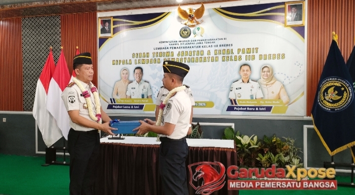 BREBES,GarudaXpose.com//-Suasana haru bercampur optimisme menyelimuti Aula Lapas Kelas IIB Brebes, Rabu, 29/4/2026. Tongkat komando resmi beralih dari Gowim Mahali kepada Mudo Mulyanto melalui prosesi Serah Terima Jabatan dan kenal pamit yang berlangsung khidmat dan penuh keakraban.
