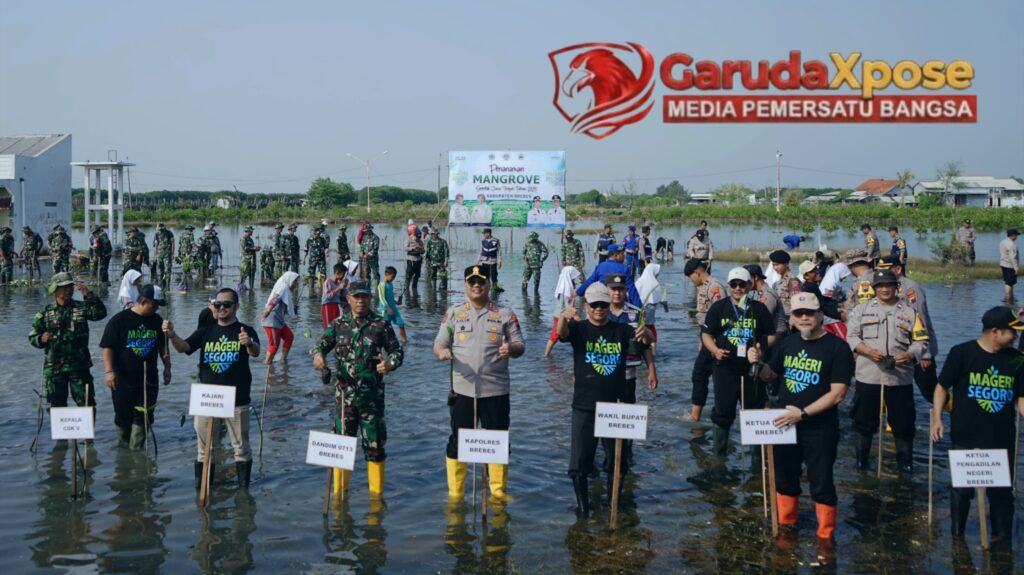 BREBES, GARUDAXPOSE. COM-Ribuan pohon mangrove ditanam serentak di wilayah pesisir Jawa Tengah pada Rabu (15/10/2025) dalam rangka program Mageri Segoro yang diprakarsai oleh Gubernur Jawa Tengah, Komjen Pol (Purn) Drs. Ahmad Luthfi. Kegiatan ini bertujuan untuk menjaga kelestarian lingkungan pesisir dan mencegah abrasi.
