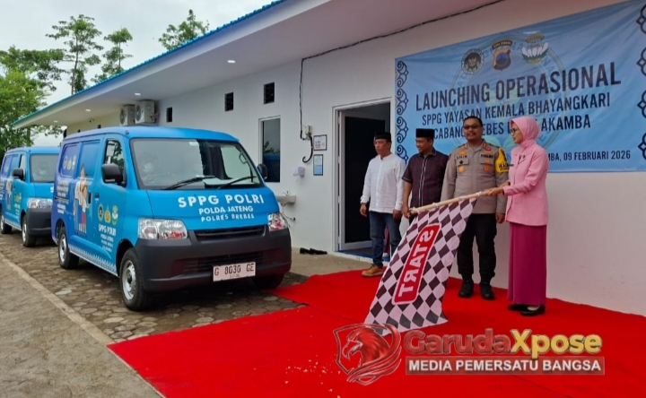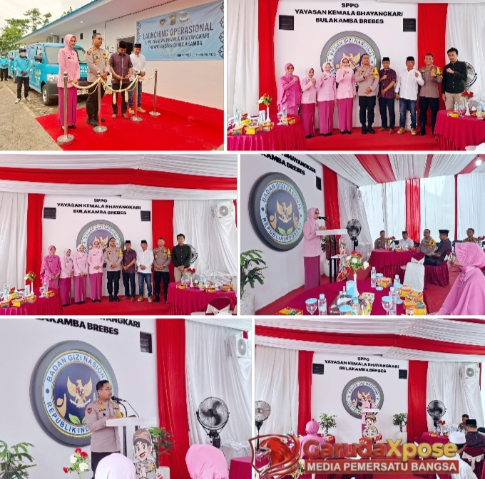 BREBES,BULAKAMBA.GarudaXpose.com -Dapur Satuan Pelayanan Pemenuhan Gizi (SPPG) Bulakamba Yayasan Kemala Bhayangkari Cabang Brebes Polda Jateng-Brebes resmi diluncurkan pada Senin (09/02/2026). Acara ini dihadiri oleh Kapolres Brebes AKBP Lilik Ardhiansyah, Ketua Cabang Bhayangkari Brebes Ny. Ira Lilik, Waka Polres Brebes Kompol Purbo Adjar Waskito, Camat Bulakamba Setiawan Nugroho, Danramil 07/Bulakamba Kapten Arm Sukirno, serta tamu undangan lainnya, termasuk H Ridhohul Khukam, S.T., H. Ikhmal Jaya, dan Kepala Desa Karangsari Sunarto.