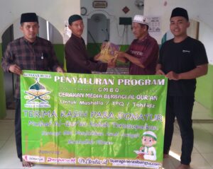 Lebih lanjut Septyan menyampaikan rasa syukur dan terima kasih tak terhingga kepada semua pihak yang terlibat di kegiatan penyaluran mushaf Al – Qur’an kali ini. Menurutnya, GMBQ mampu menyalurkan 20 mushaf Al-Qur’an berkat dukungan penuh dari Donatur selaku pewakif maupun beberapa media sebagai mitranya dalam hal publikasi pemberitaan dari berbagai media online.