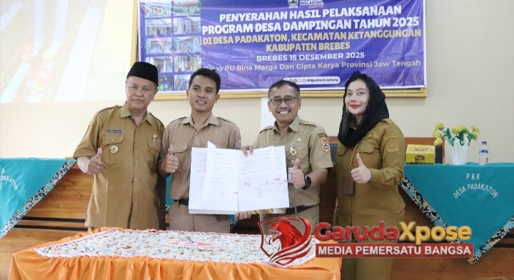 BREBES, GarudaXpose.com-Pemerintah Provinsi Jawa Tengah melalui Dinas Pekerjaan Umum Bina Marga dan Cipta Karya (PUBMCK) menyerahkan bantuan program desa dampingan di Desa Padakaton, Kecamatan Ketanggungan, Brebes, Senin (15/12/2025). Bantuan ini berupa Rumah Tidak Layak Huni (RTLH), jamban, dan bantuan pencegahan stunting.