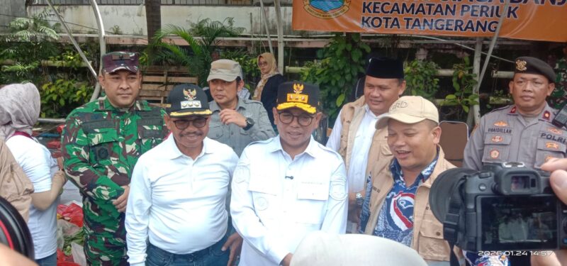 Garudaxpose.com | Kota Tangerang – Gubernur Banten, H.Andra Soni.S.M.,M.AP., di dampingi Walikota Tangerang, Drs.H.Sachrudin, dan Wakil Walikota, H. Maryono Hasan.A.P., meninjau lokasi terdampak banjir di beberapa wilayah Kecamatan Periuk, Kota Tangerang, Provinsi Banten. Ikut mendampingi pula, diantaranya Kalak BPBD Kota Tangerang, H.Mahdiar.S.STP., Camat Periuk, Andika,TNI-POLRI, dan seluruh Forkopimda Kota Tangerang pada Sabtu siang.(24/01/2026)