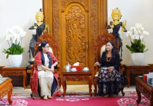 Mengingat Ibu Putri Koster dikenal konsisten terhadap pelestarian tenun khas Bali, Acha berharap memperoleh rekomendasi terkait busana yang akan dikenakannya pada malam budaya.“Karena saya membawa nama Bali, mohon rekomendasi dari Ibu,” harapnya.