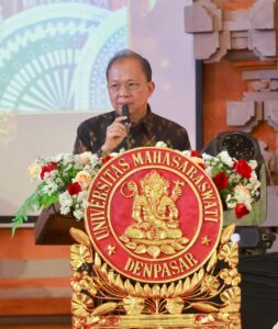 Garudaxpose.com || Denpasar Bali – Gubernur Bali Wayan Koster menghadiri pelantikan Rektor Universitas Mahasaraswati Denpasar, I Ketut Sukewati Lanang Putra Perbawa,  dan dalam kesempatan tersebut, Gubernur Koster membuka peluang kolaborasi riset antara Pemerintah Provinsi Bali dan perguruan tinggi se-Bali guna mendukung pembangunan daerah berbasis penelitian. Dalam sambutannya, Gubernur Koster mengapresiasi civitas akademika Universitas Mahasaraswati Denpasar yang dinilai konsisten menjalankan Tri Dharma Perguruan Tinggi, meliputi pendidikan dan pengajaran, penelitian dan pengembangan, serta pengabdian kepada masyarakat, di Auditorium Saraswati Universitas Mahasaraswati Denpasar, Sabtu (21/2).