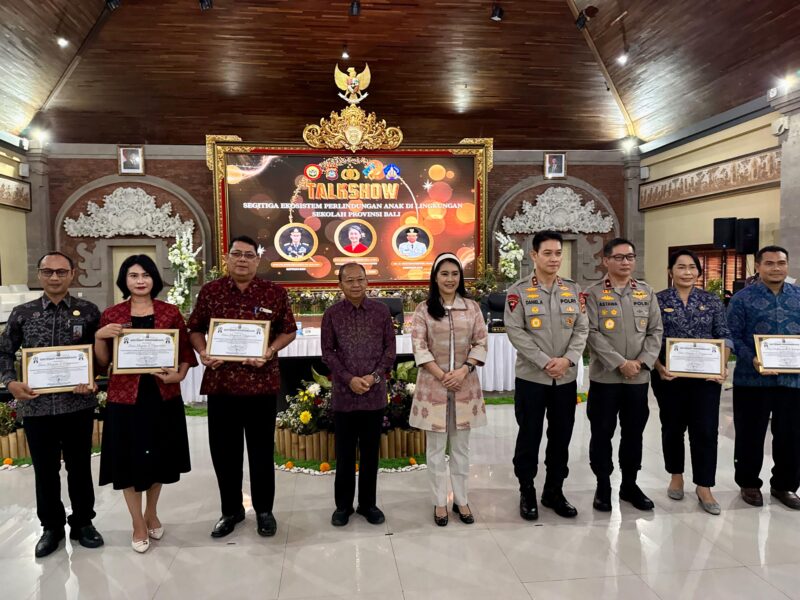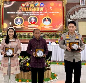 Garudaxpose.com l Denpasar Bali – Gubernur Bali Wayan Koster menaruh perhatian serius pada upaya pencegahan terjadinya tindak kekerasan pada anak. Ia mendukung penguatan segitiga ekosistem yaitu keluarga, sekolah dan masyarakat dalam upaya menangkal terjadinya tindak kekerasan pada anak. Hal itu disampaikan Gubernur Koster dalam sambutan saat menghadiri talkshow segitiga ekosistem perlindungan anak di lingkungan sekolah yang berlangsung di Gedung Presisi Polda Bali, Jumat (24/4).