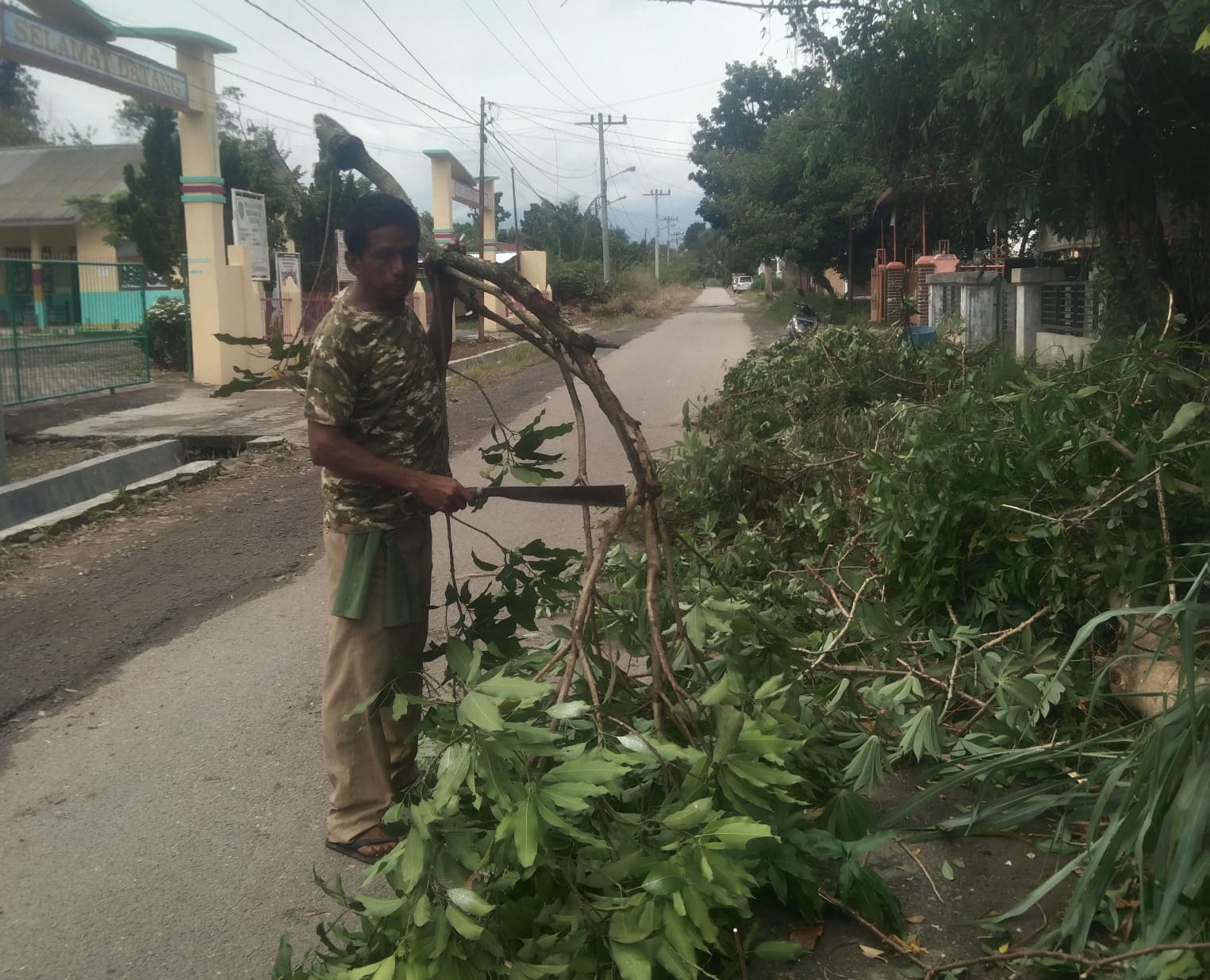 Kegiatan gotong royong mandiri ini berlangsung di Jalan Karya Pembangunan, tepatnya di depan TK Negeri Sibuhuan, bersebelahan dengan gerbang kantor Telkom. Dengan semangat yang tinggi, ia memotong dan merapikan tanaman liar serta dedaunan yang dianggap sudah mengganggu pemandangan dan kelancaran lalu lintas.