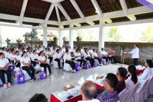 Hal tersebut disampaikan dalam kegiatan Aksi Sosial TP Posyandu Provinsi Bali “Membina dan Berbagi” di Wantilan Pura Manik Corong, Desa Sumita, dan Wantilan Balai Kanginan, Desa Babakan, Kecamatan Gianyar, Kabupaten Gianyar, Selasa (7/4) kemarin.