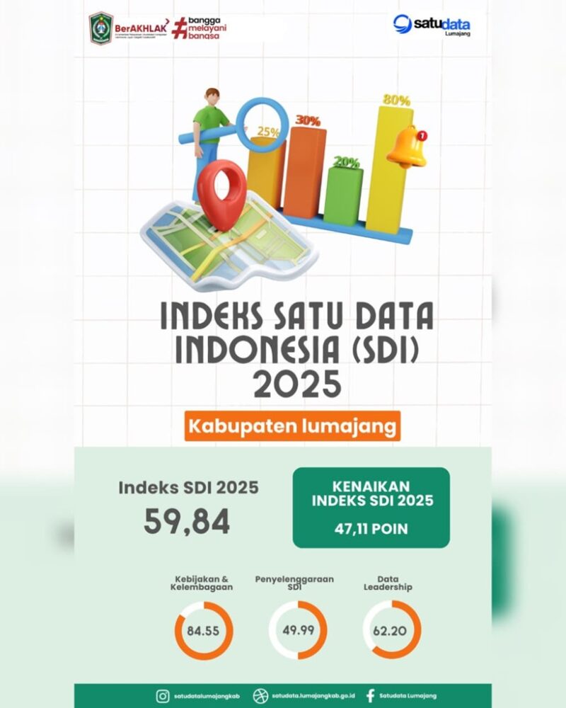 GarudaXpose.com I Lumajang-Penyelenggaraan tata kelola data di Kabupaten Lumajang menunjukkan perkembangan yang positif. Berdasarkan hasil final Evaluasi Penyelenggaraan Satu Data Indonesia (SDI) Tahun 2024, Nilai Indeks SDI Kabupaten Lumajang Tahun 2025 tercatat meningkat dari 47,11 poin menjadi 59,84 poin.