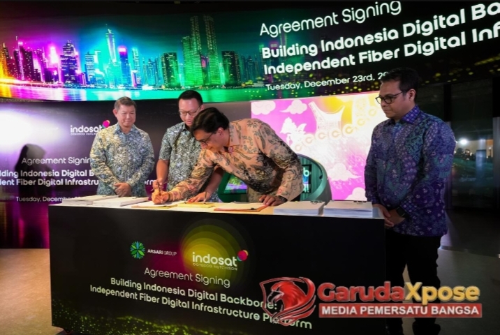 JAKARTA,GarudaXpose.comaaJakarta, 29 Desember 2025 – Indosat Ooredoo Hutchison (Indosat atau IOH) bersama konsorsium yang terdiri dari Arsari Group dan Northstar Group (“Konsorsium”) hari ini menandatangani perjanjian investasi pembentukan perusahaan patungan (joint venture) untuk membangun sebuah platform serat optik digital terkemuka di Indonesia (“FiberCo”). Kemitraan strategis ini menjadi tonggak penting dalam upaya bersama memperkuat tulang punggung digital nasional, di saat ekosistem digital Indonesia tengah memasuki fase pertumbuhan yang krusial. Melalui kemitraan ini, seluruh pihak menegaskan komitmen bersama untuk memperkuat konektivitas nasional, menghadirkan layanan digital berstandar global, serta mendukung percepatan transformasi digital Indonesia secara berkelanjutan.