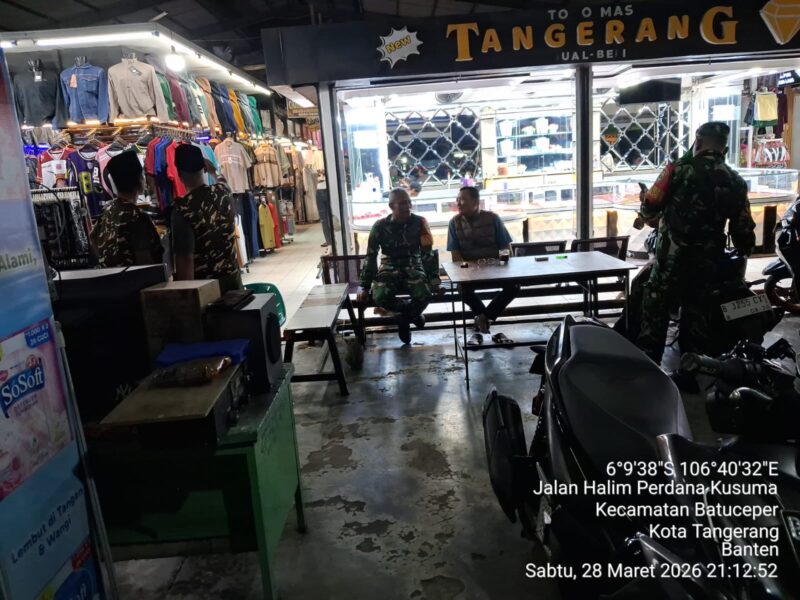Garudaxpose.com, Kota Tangerang – Dalam rangka menjaga stabilitas keamanan dan ketertiban masyarakat, Babinsa Koramil 02/Batuceper Kodim 0506/Tgr bersama unsur gabungan melaksanakan patroli dan siskamling keliling di titik strategis Wilayah Batuceper dan sekitarnya. Sabtu (28/03/26).