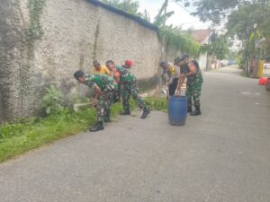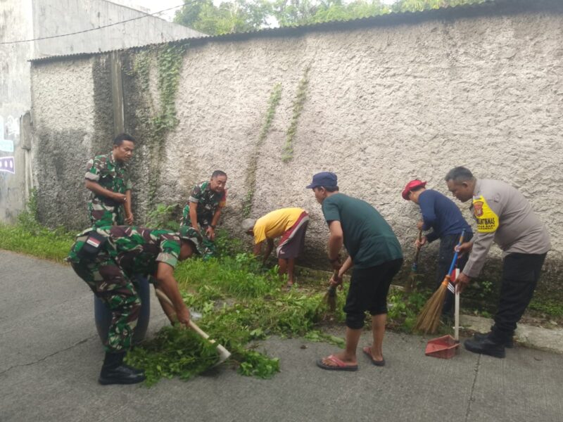 Jelang Nataru, Babinsa Kerja Bakti Bersihkan Sampah Dan Rumput Liar
