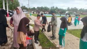 Dengan penuh semangat kebersamaan, para peserta membersihkan area alun-alun dengan melakukan pemungutan sampah, menyapu, serta merapikan lingkungan sekitar. Kegiatan ini menjadi bukti nyata kepedulian aparat dan masyarakat terhadap kebersihan lingkungan, sekaligus sebagai upaya menanamkan nilai gotong royong sejak dini kepada generasi muda.