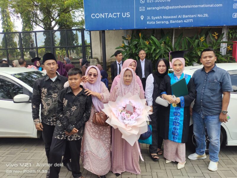 kini berdiri tegak menyaksikan putri tercintanya mengenakan toga simbol kemenangan atas perjuangan panjang yang tak pernah ia keluhkan.