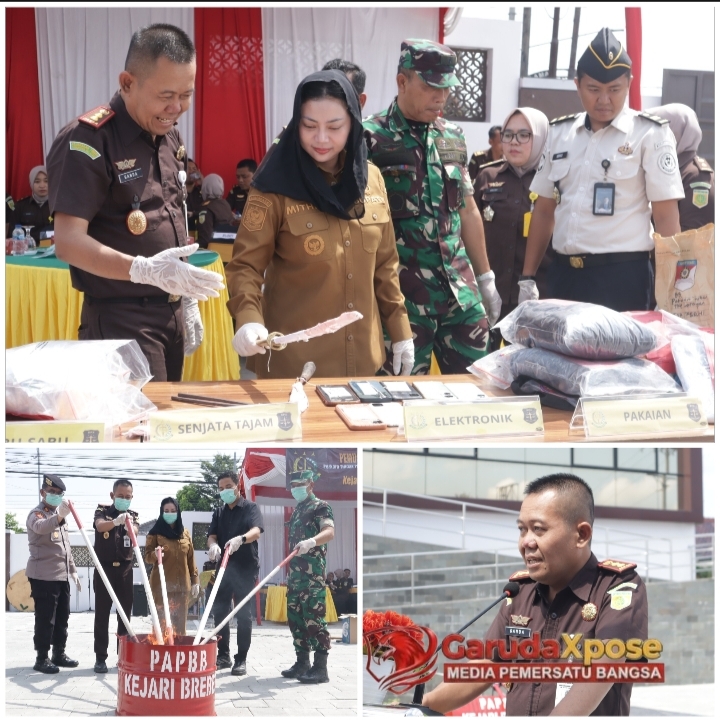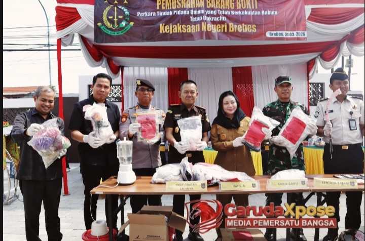 BREBES,GarudaXpose.com//-Kejaksaan Negeri Brebes tak main-main dalam menumpas kejahatan yang meracuni masyarakat hingga ke akar-akarnya. Selasa (31/3/2026), mereka menggelar aksi pemusnahan barang bukti (barbuk) dari 33 kasus pidana umum yang putusannya sudah inkrah dan berkekuatan hukum tetap. Ini bukan sekadar seremonial rutin dan biasa saja, melainkan deklarasi perang terbuka, sebuah sinyal tegas nan membara bagi para pelaku kejahatan di Bumi Brebes, bahwa ruang gerak mereka semakin sempit!