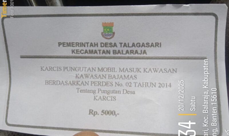 GarudaXpose.com | Kabupaten Tangerang – Kepala Desa Telaga Sari, Kecamatan Balaraja, Kabupaten Tangerang, pada Sabtu siang (20 Desember 2025), menolak memberikan komentar atau konfirmasi kepada awak media terkait isu pungutan karcis kendaraan yang diklaim dikenakan kepada pengemudi yang melintas di wilayah Kawasan Baja Mas Balaraja.