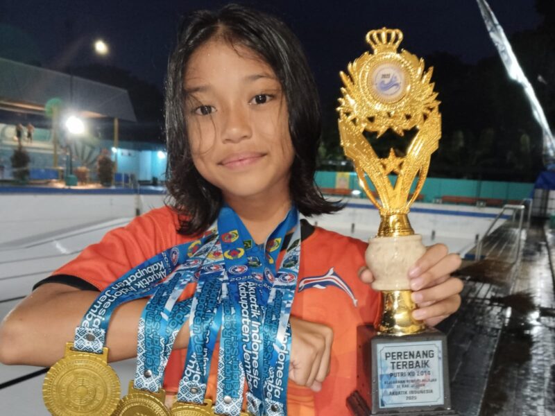 Garudaxpose.com | Probolinggo – Semangat juang dan konsistensi tinggi kembali ditunjukkan oleh atlet renang muda berbakat dari SDN Jember Lor 02 Kecamatan Patrang bernama Khanza Felisia Diyanah. Dalam ajang Olimpiade Olahraga Siswa Nasional (O2SN) tingkat Kecamatan Patrang yang digelar baru-baru ini, Khanza berhasil mempertahankan prestasinya sebagai juara di cabang olahraga renang.28 April 2026