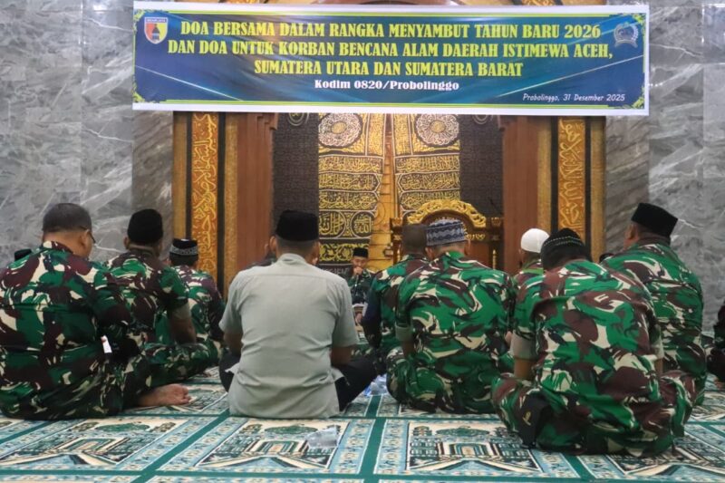 Garudaxpose.com | Probolinggo – Dalam rangka menyambut Tahun Baru 2026 sekaligus mendoakan para korban bencana alam, Kodim 0820/Probolinggo melaksanakan kegiatan Doa Bersama yang bertempat di Masjid Al Hidayah Kodim 0820/Probolinggo, pada Rabu malam, 31 Desember 2025.