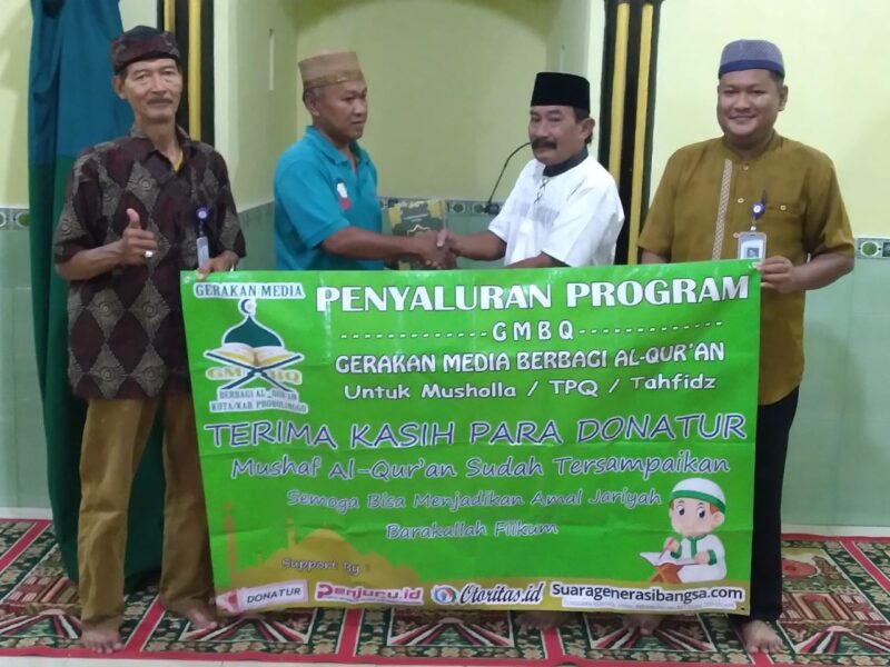 Garudaxpose.com | Probolinggo – Jelang Bulan Ramadhan 1447 H, Gerakan Media Berbagi Al – Qur’an gencarkan kegiatan sosial keagamaan dengan menyalurkan sejumlah Wakaf Al – Qur’an di Kota maupun Kabupaten Probolinggo.