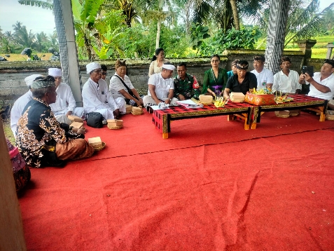 Garudaxpose.com | Bali – Sebagai wujud nyata dukungan TNI AD terhadap program ketahanan pangan di wilayah binaan, Babinsa Desa Bakbakan Koramil 1616-01/Gianyar, Sertu. I Wayan Suardika menghadiri acara pengukuhan Pekaseh Subak Dugul Desa Bakbakan yang digelar di Pura Dugul Desa Bakbakan, Kecamatan dan Kabupaten Gianyar.