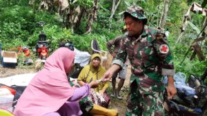 “Kami memastikan warga mendapatkan penanganan awal dengan cepat. Banyak di antara mereka yang mengalami batuk, luka lecet, dan kelelahan,” ungkap Peltu Iswahyudi saat menangani salah satu warga lanjut usia.