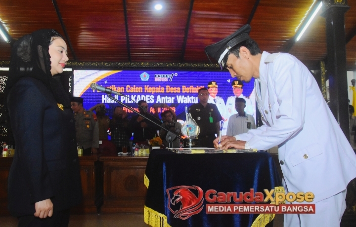 BREBES,GarudaXpose.com//-Pemerintah Kabupaten Brebes mengambil langkah strategis untuk memastikan keberlangsungan roda pemerintahan di tingkat desa tetap berjalan lancar, terstruktur, dan tidak terganggu akibat kekosongan jabatan. Senin, 20 April 2026, bertempat di Pendopo Kabupaten Brebes, Bupati Brebes Hj. Paramitha Widya Kusuma, SE.MM secara resmi melantik 14 Calon Kepala Desa Definitif hasil Pemilihan Antar Waktu (PAW).