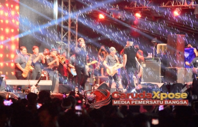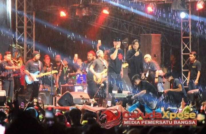 BREBES,GarudaXpose.com-Stadion Karangbirahi Brebes jadi lautan manusia dan cahaya serta suara pas Dewa 19 tampil nutup acara “NARAGIGS, Sabtu (13/12) malem. Gerimis turun pas band legendaris itu naik panggung, tapi ribuan penonton tetep asik dan makin nyanyi bareng lagunya.