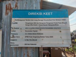 Garudaxpose.com | Tangsel – Proyek Tandon sama Long Storage di Puri Bintaro Indah. Dari info yang beredar, anggaran hampir Rp 10 miliar dari APBD Tangsel 2025, tapi sampai 2026 masih belum kelar dan kualitasnya dipertanyakan. CV Stara Maju Perkasa yang jadi pelaksana malah dapat “pembelaan” dari DSDABMBK, jadi banyak yang curiga ada kompromi atau pembiaran.