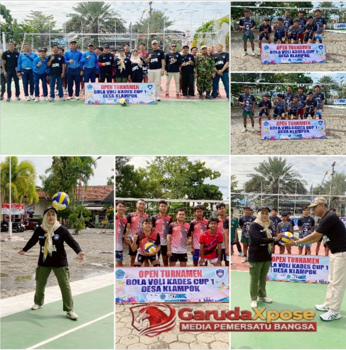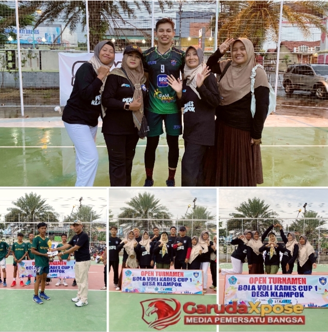 BREBES,GarudaXpose.com-Turnamen bola voli Kades Cup 2026 resmi dibuka! Kepala Desa Klampok, Nasikahtun Fitriyani, S.Pd (Mbak Vivi), dan Sekdes Klampok, S. Kusyanto, S.Kom, membuka acara dengan seremonial yang meriah, dihadiri 16 tim dengan sistem gugur yang siap bertanding! Minggu,4 Januari 2026.