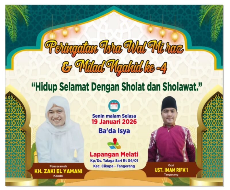 Garudaxpose.com | Kabupaten Tangerang – Semangat spiritualitas menyelimuti lingkungan RT 004/05 Desa Talagasari dalam rangka memperingati peristiwa besar Isra Mi’raj Nabi Muhammad SAW sekaligus merayakan Milad ke-4 Group Sholawat Pemuda “Ngahid” (Ngala Hidayah).