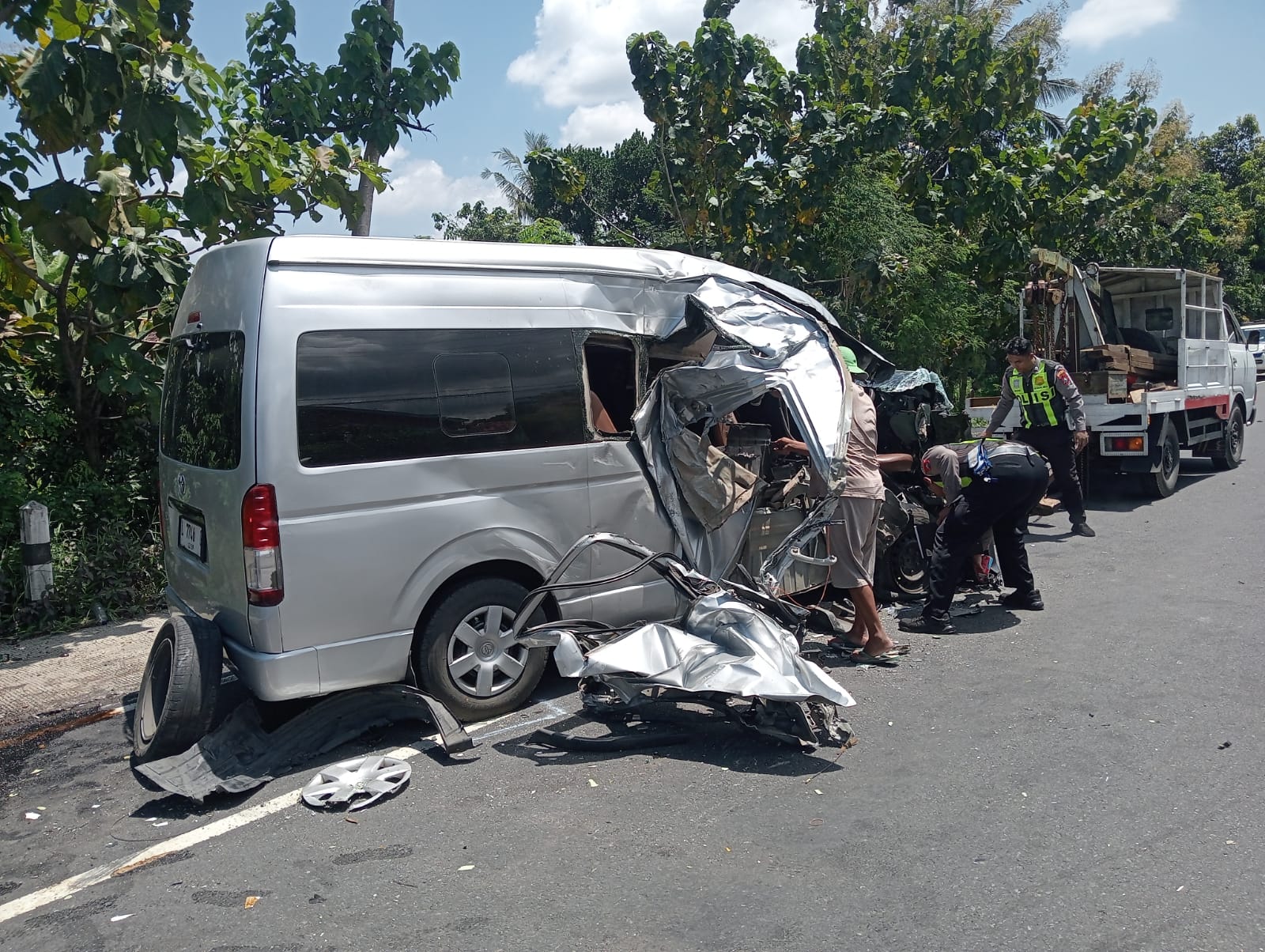 “Saat memasuki lokasi kejadian, kendaraan mobil jenazah diduga mengambil jalur berlawanan. Pada saat yang bersamaan dari arah selatan ke utara melaju kendaraan Toyota Hi Ace, sehingga terjadi tabrakan karena jarak yang sudah terlalu dekat,” ungkap Iptu Aditya.