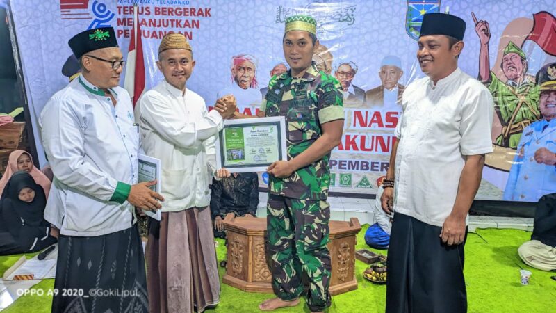 Camat Pakuniran, Hasan Zainuri, secara simbolis menyerahkan penghargaan khusus kepada tokoh dan generasi lintas sektor yang telah berkontribusi besar dalam menyukseskan berbagai kegiatan Hari Besar Nasional di wilayah Kecamatan Pakuniran, Kabupaten Probolinggo.