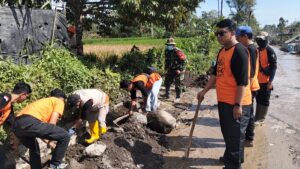 Garudaxpose.com | Lumajang – Upaya pemulihan infrastruktur dasar pasca erupsi Gunung Semeru terus dilakukan TNI. Personel gabungan Kodim 0821/Lumajang bersama Yonif 527/BY, BPBD dan relawan, melaksanakan kegiatan normalisasi irigasi dengan membersihkan selokan di Jalan Raya Gumukmas RT 008 RW 003, Desa Supiturang, Kecamatan Pronojiwo, Kabupaten Lumajang, Jawa Timur, Senin (1/12/2025).