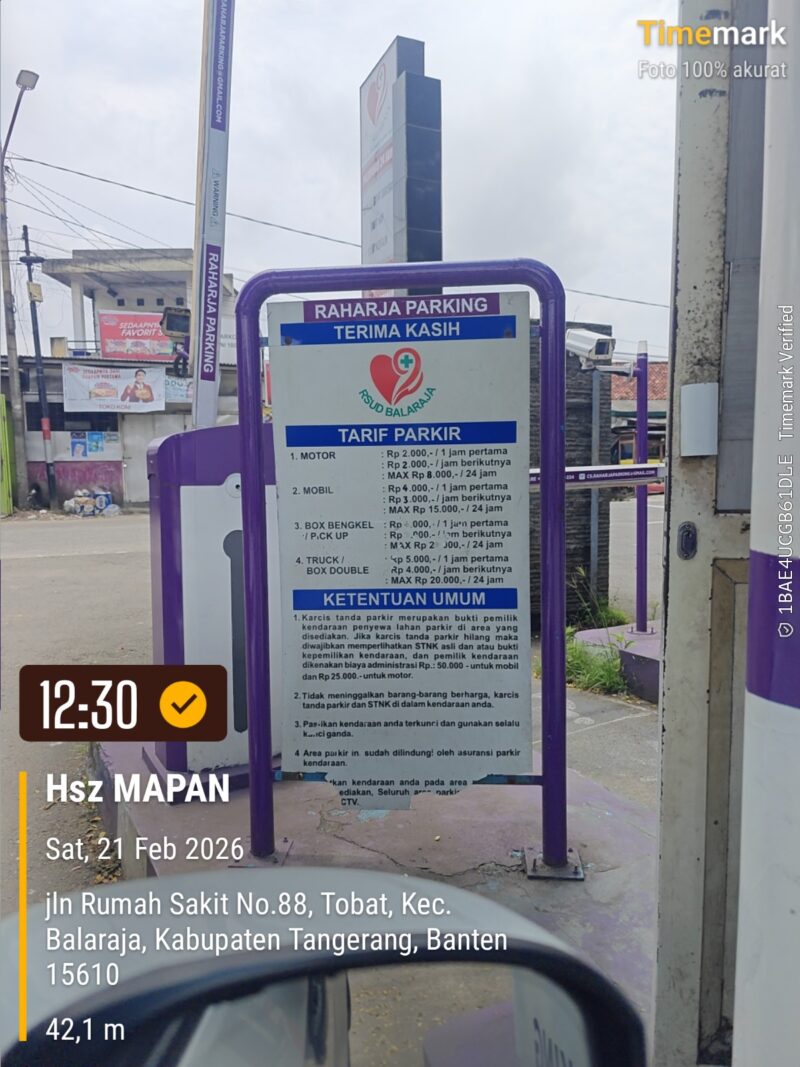Garudaxpose.com | Kabupaten Tangerang – Pengelolaan parkir di RSUD Balaraja menjadi sorotan publik. Pasalnya, seorang pengunjung mengaku dikenakan biaya parkir sebesar Rp4.000 meski belum satu jam memarkirkan kendaraannya, Sabtu (21/02/2026).